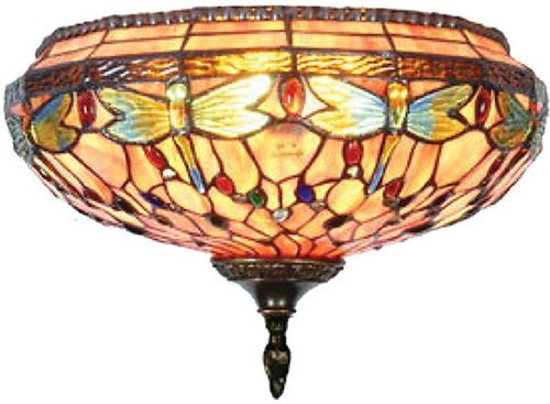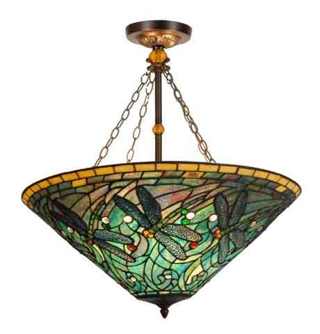 CH2825DB18-UH3 Tiffany-style Dragonfly 3-Light Inverted Ceiling Pendant Fixture