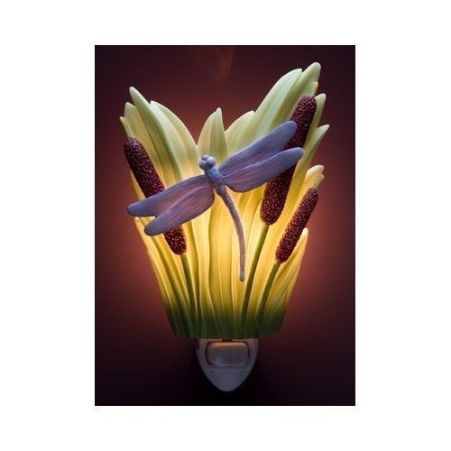 This is a really beautiful dragonfly night light with cattails. The lamp is made of bonded marble and has been hand painted. This will make a wonderful gift for anyone who likes dragonflies and dragonfly decor. Measures about 3 inches by 6 inches and comes with a presentation gift box.