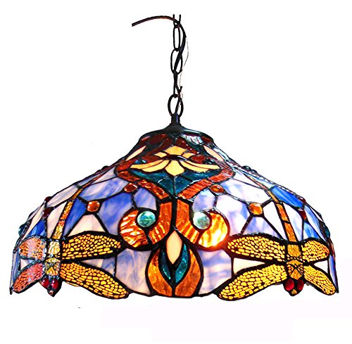 Amora Lighting AM1027HL18 Tiffany Style Dragonfly Pendant Lamp 18-Inch