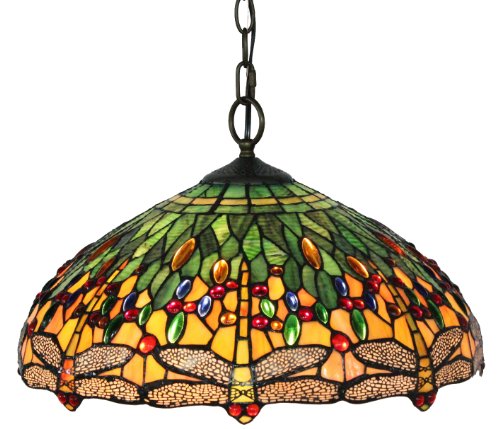 Warehouse of Tiffany 2011 Tiffany-style Dragonfly Hanging Light, Green