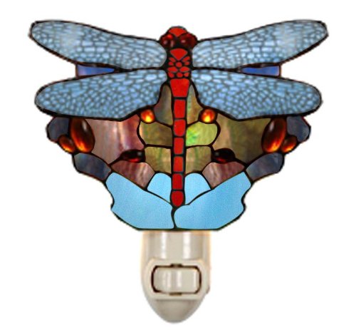 Tiffany Style Stained Glass Aqua Dragonfly Night Light