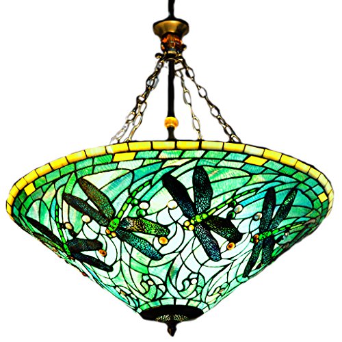 Tiffany Style Stained Glass Dragonfly Inverted Large Ceiling Pendant Lamp Fixture