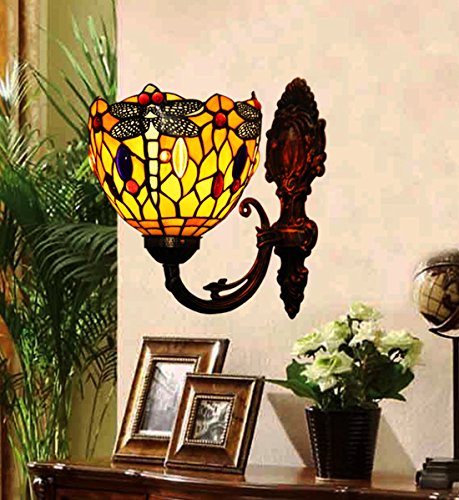Tiffany Style Red Stained Glass Dragonfly Wall Lamp Wall Fixture